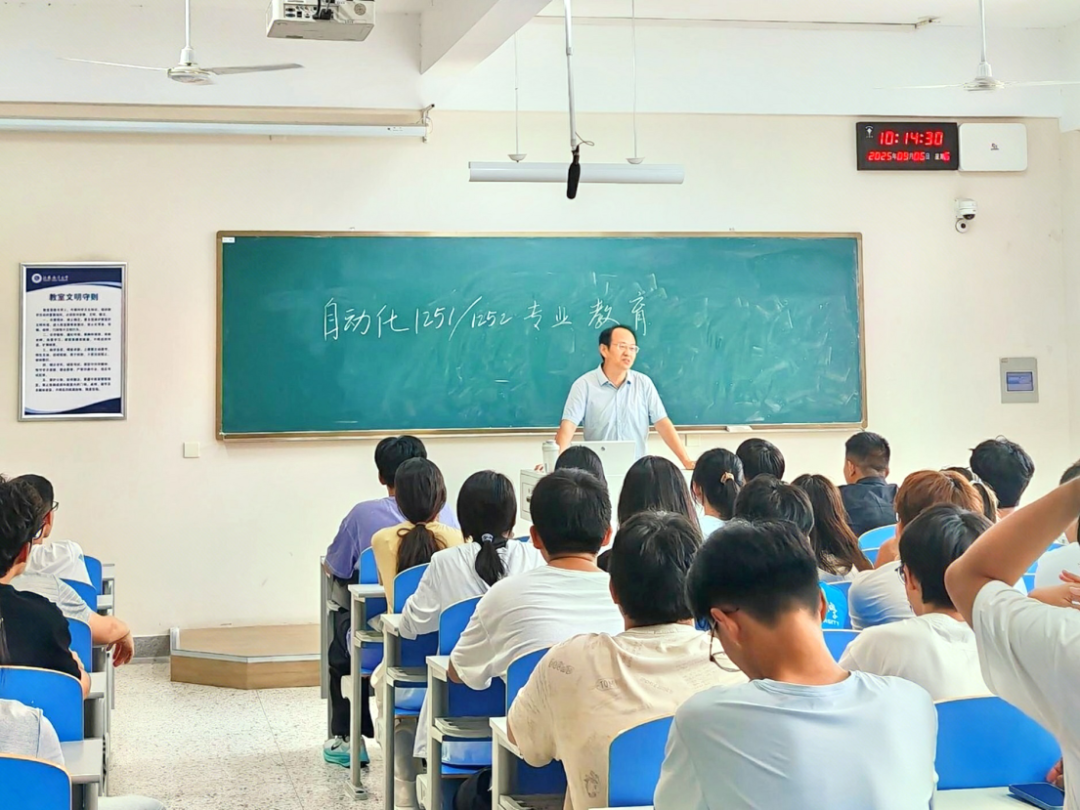 见面会现场,教师代表为新生代表一一佩戴院徽,并送上真挚地祝福。随着《蔚蓝的信仰》校歌响起,2025级新生和老师见面会圆满结束。会后,全体新生参加专业教育,各系主任详细介绍了专业的师资力量、课程体系、发展方向以及未来的就业前景,并就同学们关心的学习问题进行了深入浅出的讲解。